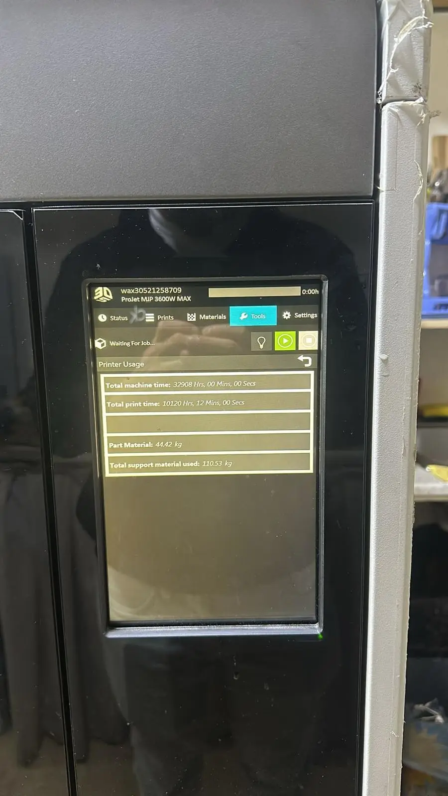 ProJet 3600W Max zu verkaufen in guten Zustand. Druckzeit ca. 10500h, verdrucktes Baumaterial unter 50KG, verdrucktes Supportmaterial ca. 110KG.