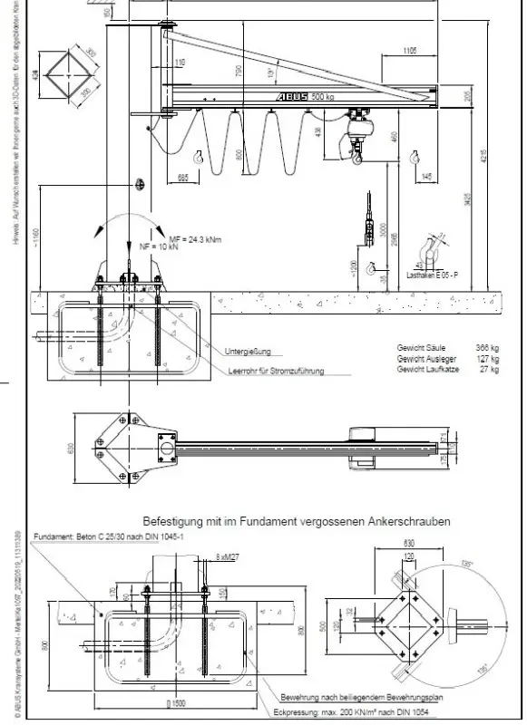 Kranbetrieb kundenseitig zu untergießen.