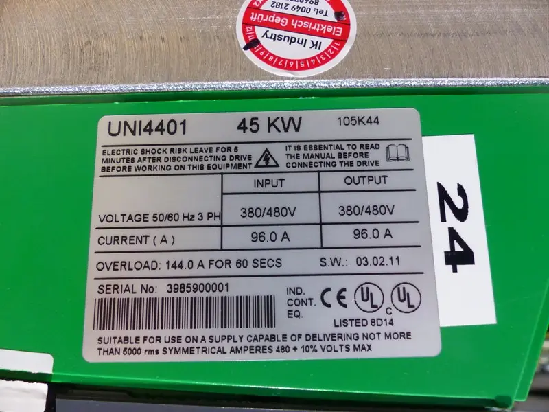 Control Techniques Unidrive UNI4401 45kW 400V 96A SW. 03.02.11 TESTED