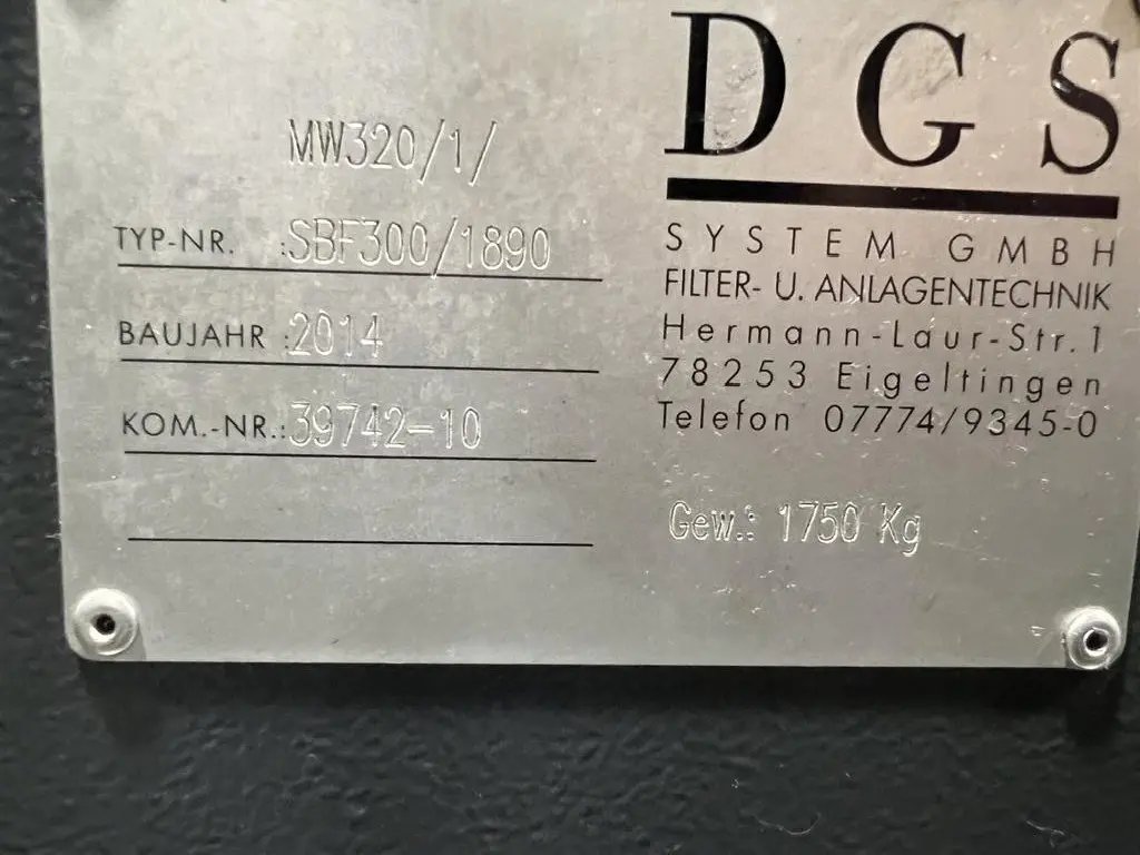 "نظام الفلترة DGS SBF 300/ 1890, سنة التصنيع 2014"