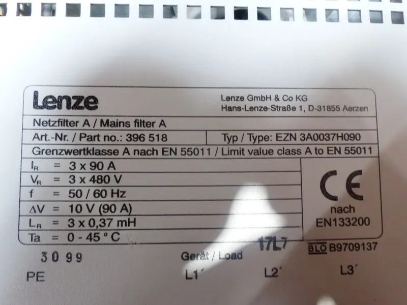 محول-التردد Lenze EZN 3A0037H090 Netzfilter A EZN3A0037H090 3x 90A 3x480V Top Zustand
