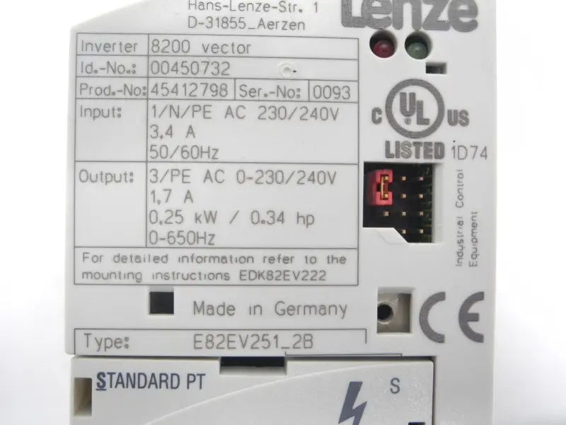 Lenze Vector 8200 E82EV251_2B E82EV251K2B 230V 0,25kW +Standart Modul Top TESTED
