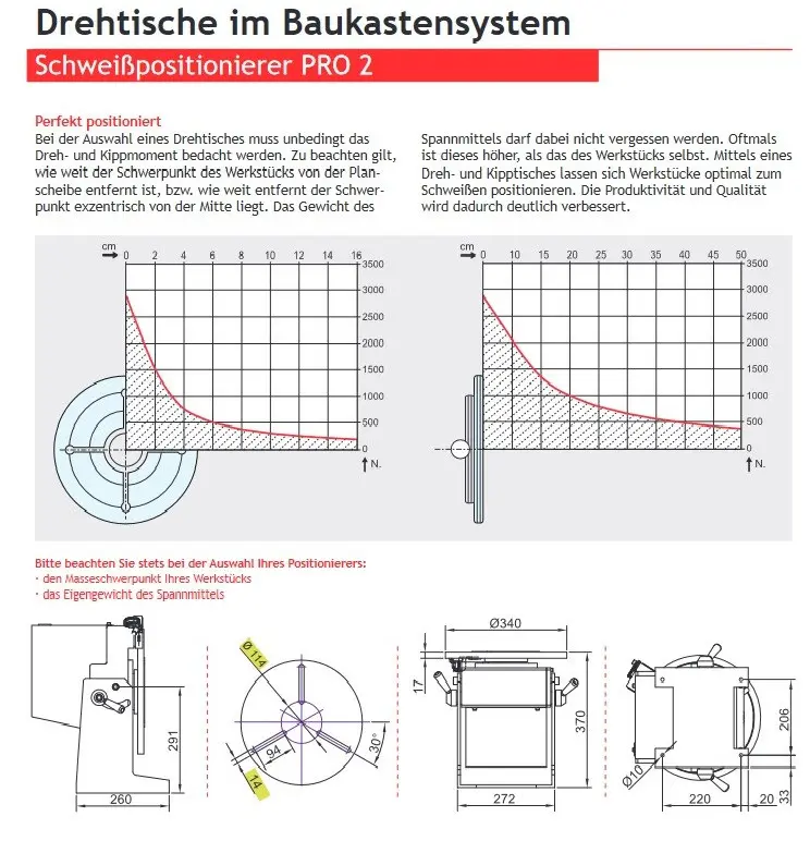 - Der Drehteller hat einen Durchmesser von 340 mm
