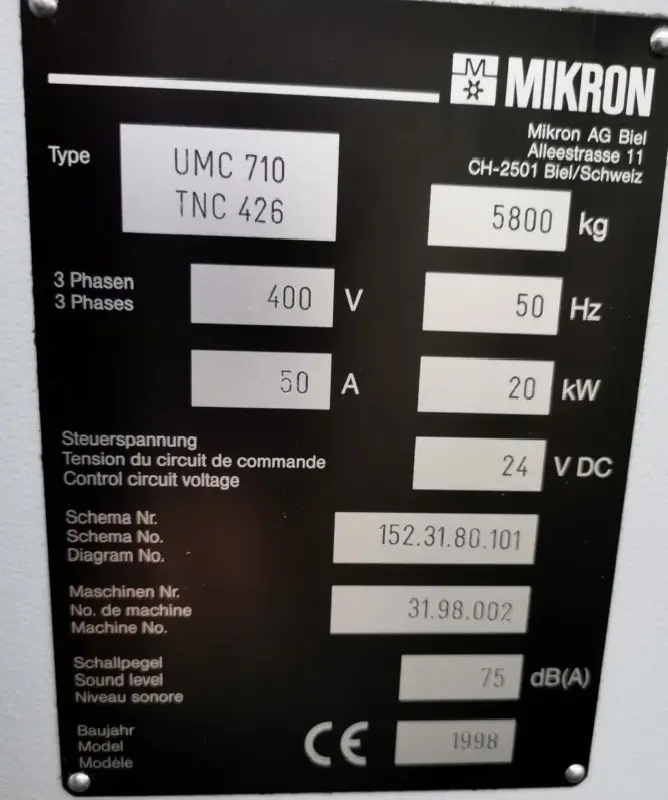 | التحكم | HEIDENHAIN, TNC 426 |