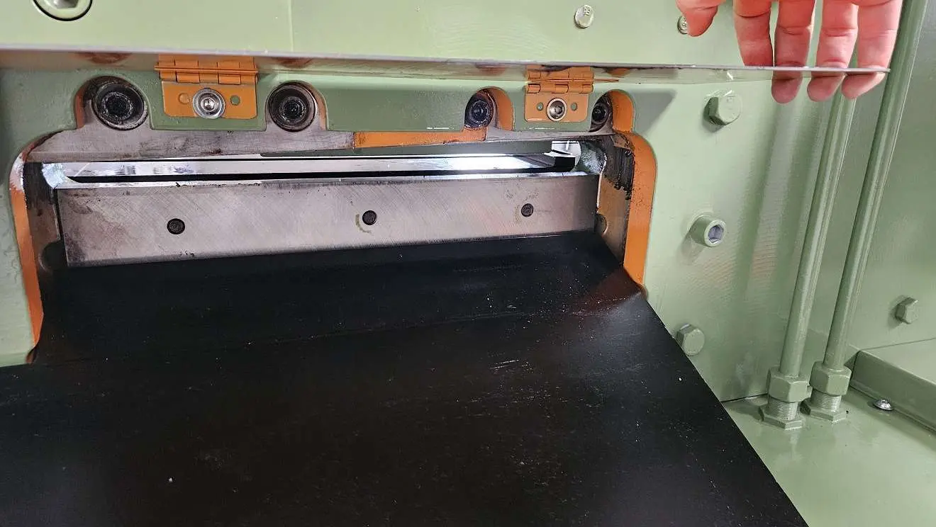 Schert an der Flachstahlschere auf 400 mm bis Materialstärke von 16 mm Stahl