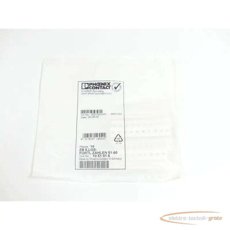 | النوع | Phoenix Contact ZB 6,LGS:Fortl.Zahlen 51-60 VPE 10St. 10 51 01 6 ungebraucht |