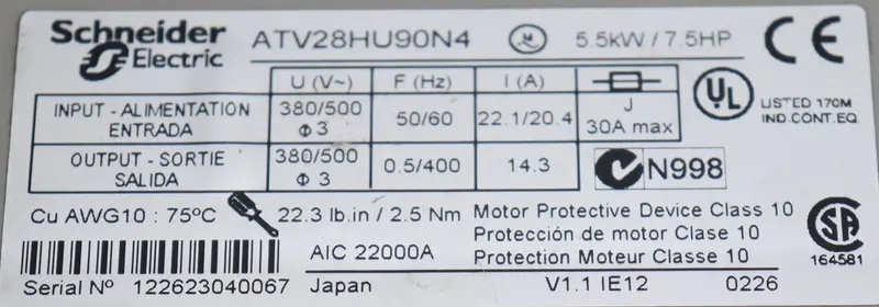 محول-التردد Schneider Electric Altivar 28 ATV28HU90N4 5,5kW 400V TESTED TOP ZUSTAND