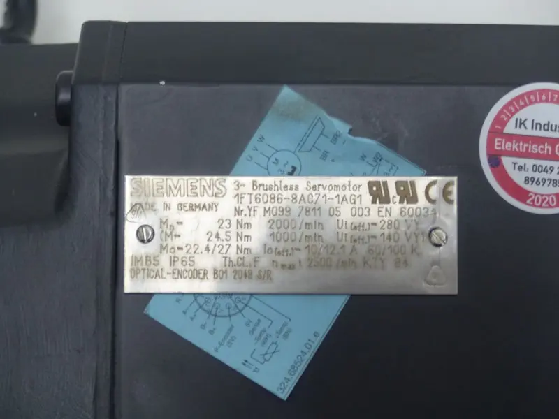 محركات كهربائية، نقل الحركة Siemens 3~Brushless Servomotor 1FT6086-8AC71-1AG1 Nmax 2500/min UNBENUTZT UNUSED