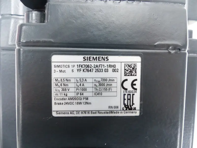 Siemens 3~Motor Servo Motor 1FK7062-2AF71-1RH0 unbenutzt UNUSED TESTED