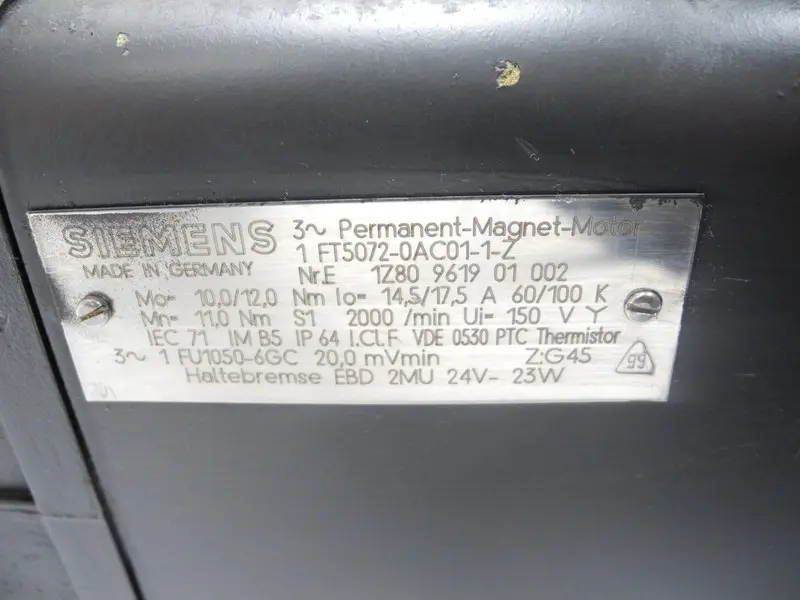 Siemens 3~Permanent Magnet Motor 1FT5072-0AC01-1-Z 2000/min 17,5A Z.G45 Break