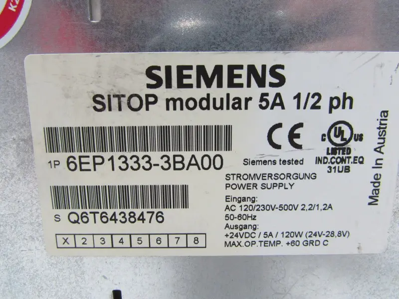 وحدة Siemens SITOP Modular 6EP1333-3BA00 230V 5A DC 24V 1/2 ph TESTED TOP ZUSTAND