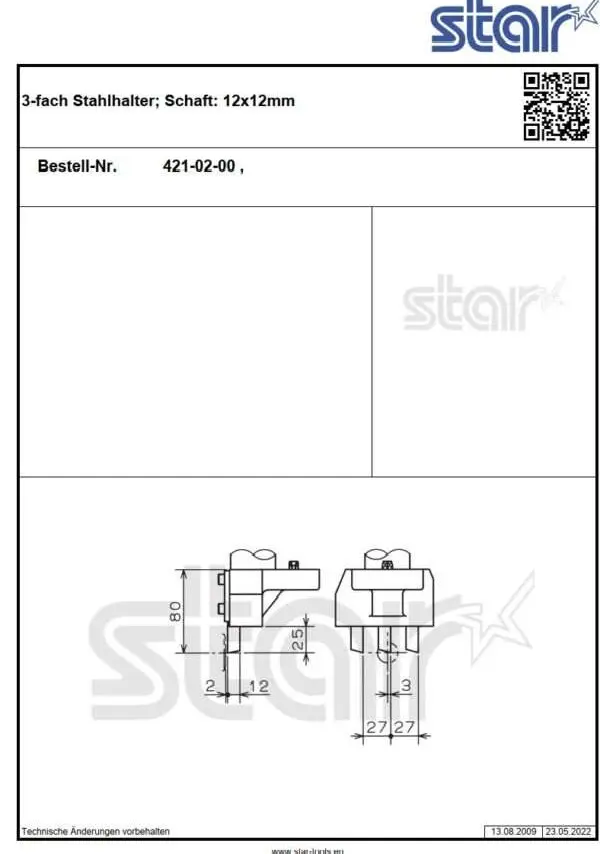 3-fach Werkzeughalter 12 x 12mm Schaft