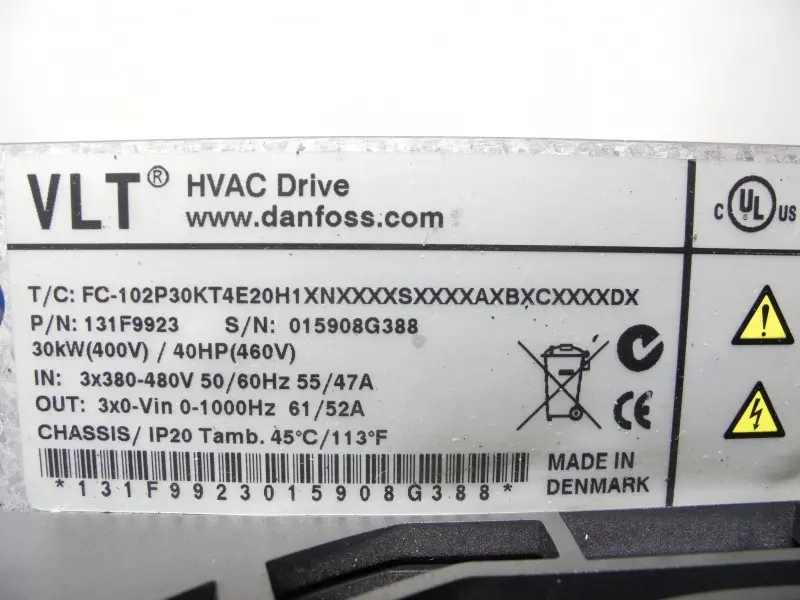 Danfoss VLT HVAC FC-102 Drive FC-102P30kT4E20H1XN 131F9923 400V 30kW Neuwertig