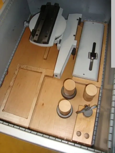 Opto elektronische Messeinrichtung mit Mikroskop, Tragarm, Abstellplatz,