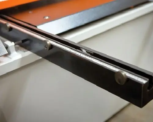 - 1x Seitenanschlag, mit T-Nut und mm-Skala