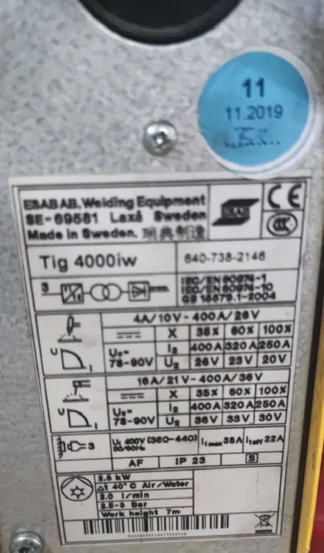 | Type of machine | Tig 4000 iw |