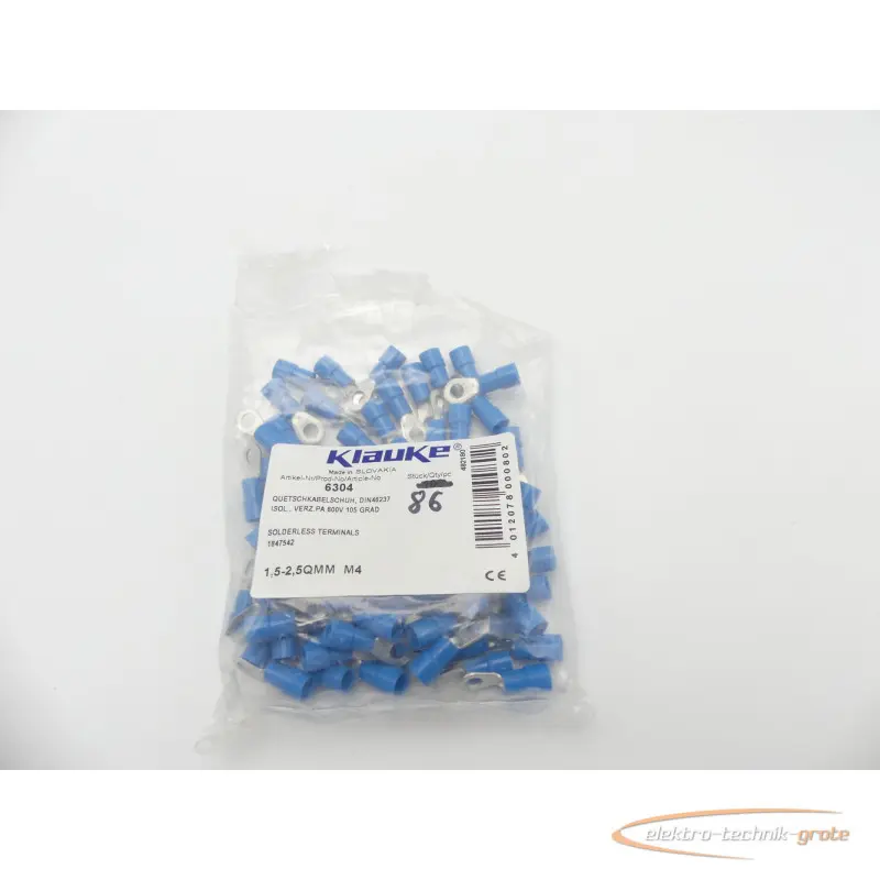 | Type of machine | Klauke 6304 Quetschkabelschuh blau 1,5-2,5 mm² VPE 86 Stk. -ungebr.- |