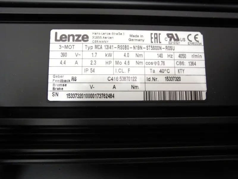 Lenze MCA 13I41-RS0B0-N19N-ST5S00N-R0SU Servomotor 1.7kW max. 4050 Unbenutzt OVP