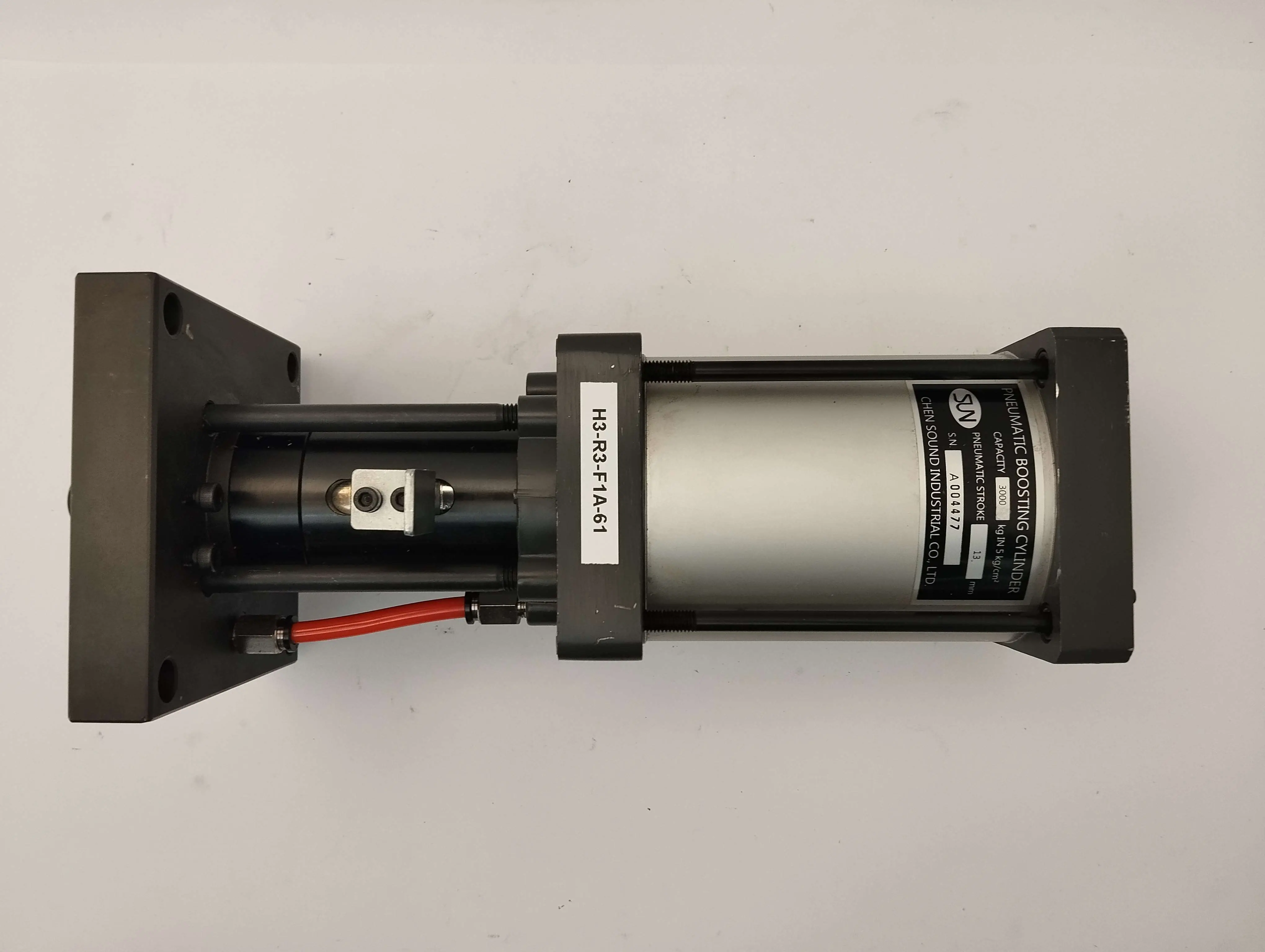 Kraftvoller pneumatischer Verstärkungszylinder mit einer Kapazität von 3000 kg bei 5 kg/cm² Druck.