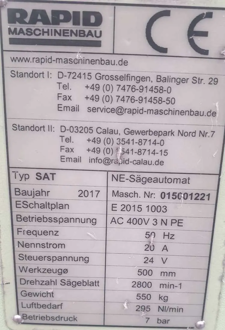 Saw blade speed: 2850 U. per min