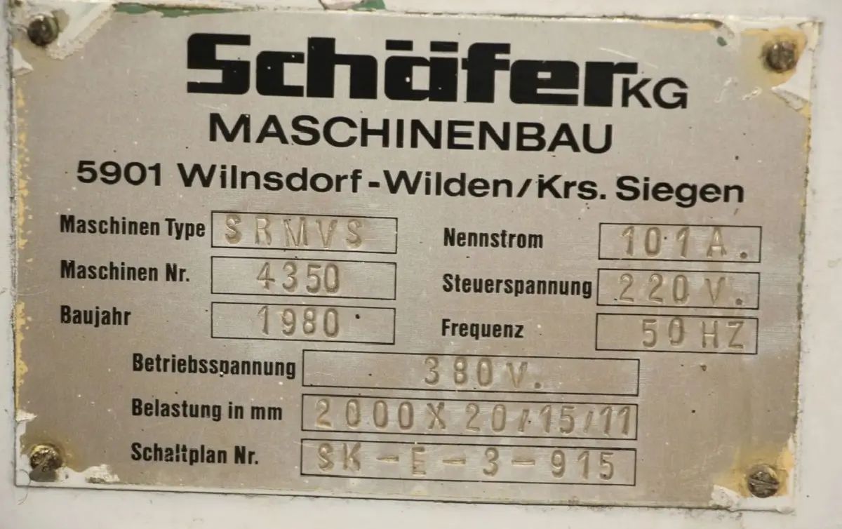 | Type of machine | SRMVS 2000/20/15/11 |