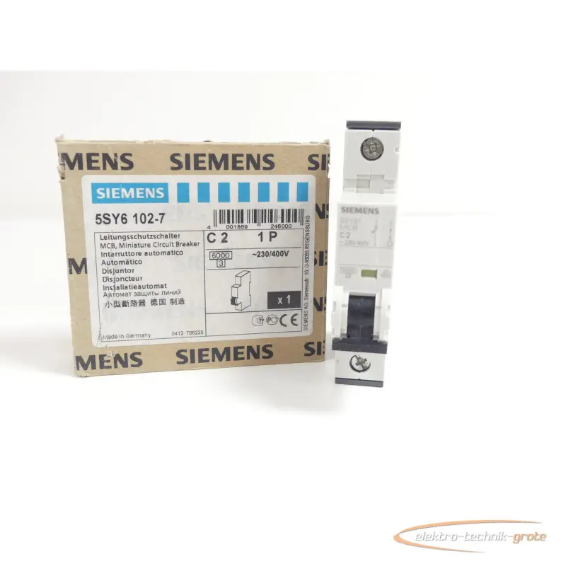 | Type: | Siemens 5SY6102-7 Leitungsschutzschalter C2 ~230/400V ungebraucht |