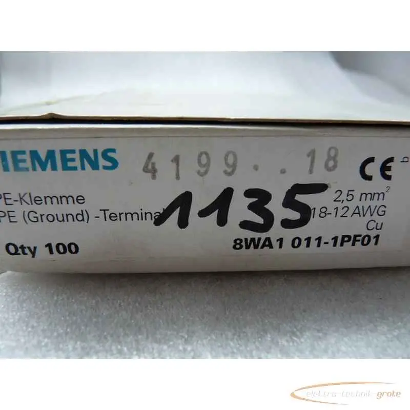 | Type of machine | 8WA1 011-1PF01 Schutzleiterklemme 2 , 5 mm2 VPE 90St ungebraucht |