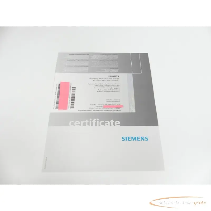 | Type: | Siemens certificate 6AU1820-0AA44-0AB0 for D445/D445-1/D445-2/D455-2 ung. |