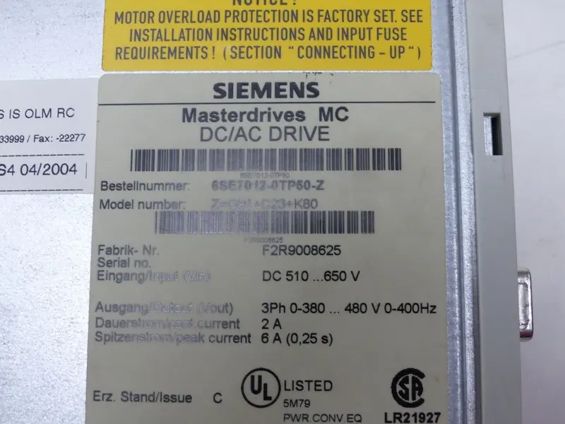 | Type of machine | 6SE7012-0TP50-Z |
