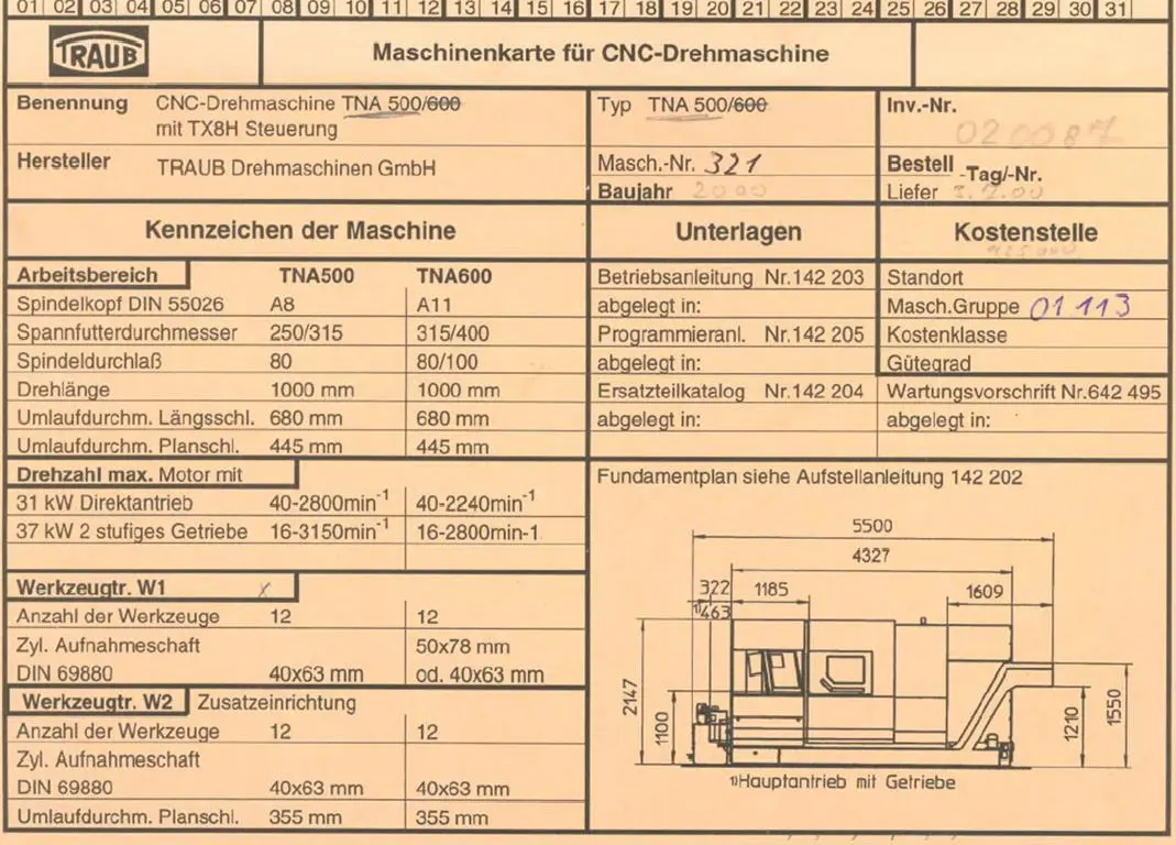 | Type of machine | TNA 500 |