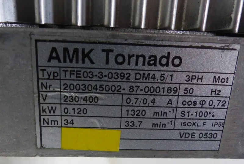 AMK Tornado Flachgetriebemotor TFE03-3-0392 DM4.5/1 Tnr.CH1512 UNUSED UNBENUTZT