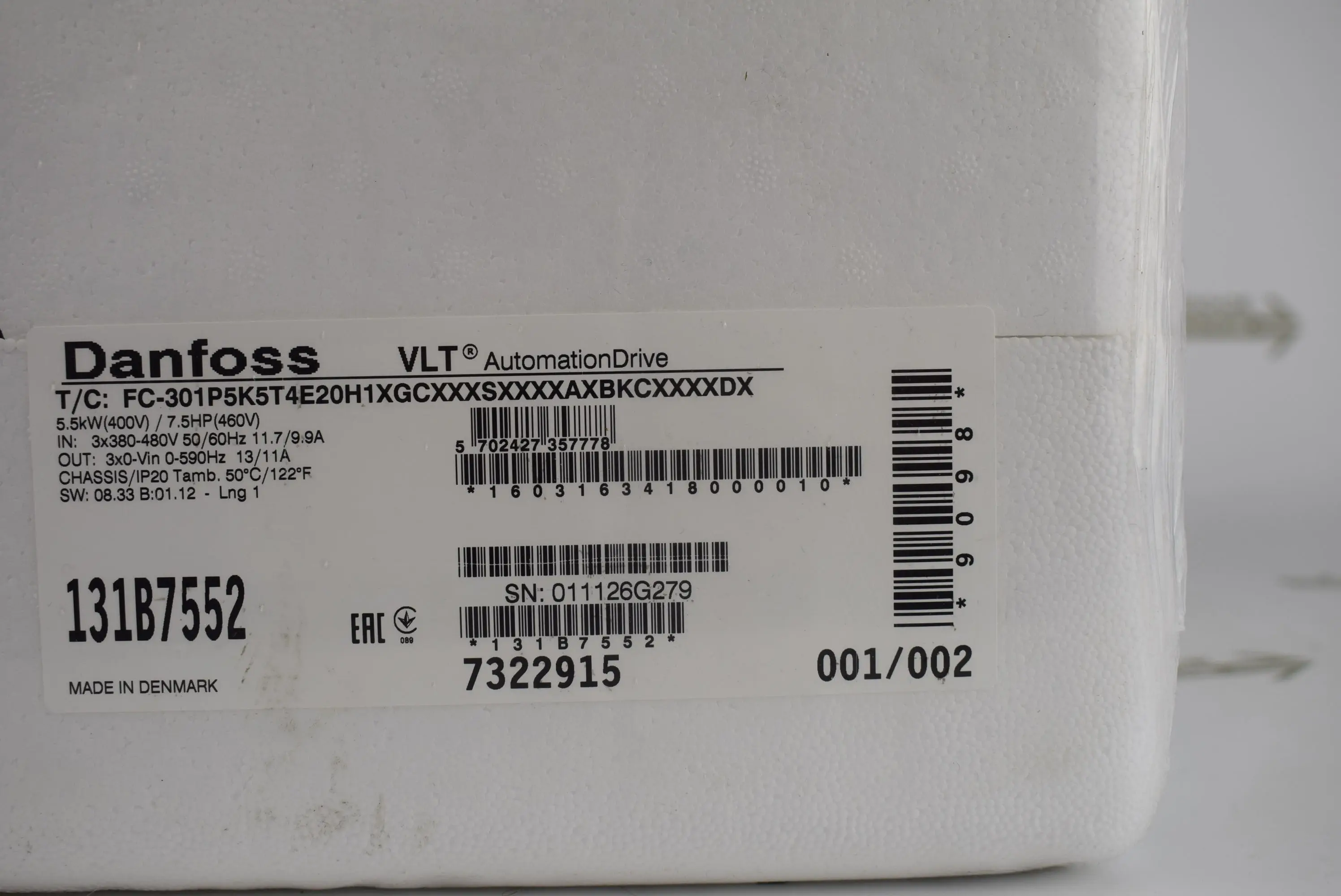 Danfoss VLT FC-301P5K5T4E20H1XGCXXXSXXXXAXBKCXXXXDX ( 131B7552 )