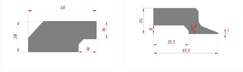 Durchgehende obere Werkzeugschiene 20° mit R1