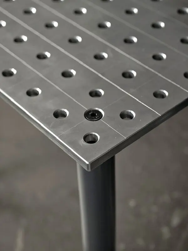 Volle gefräste Tischplatte 25 mm aus S355J2+N mit hohem Genauigkeitsgrad (+/- 0,05 mm) und gerundeten Kanten und Bohrungen
