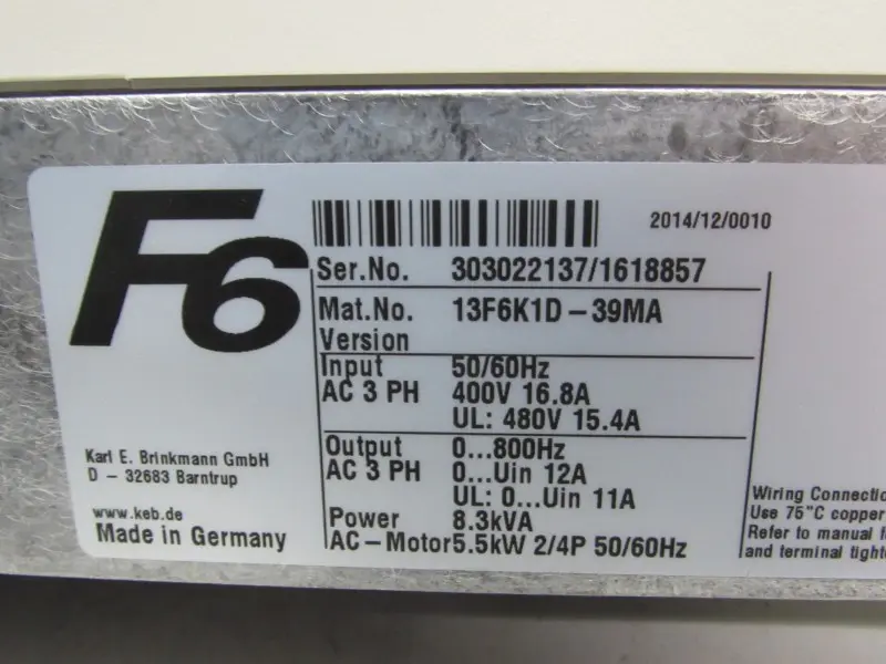 KEB F6 13F6K1D-39MA 5,5kW 400V 11A Umrichter neuwertig