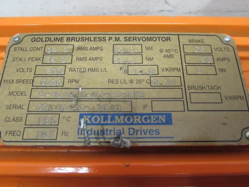 Kollmorgen Goldline Servomotor B-404S-93-B3-072 max. 5000 230 V
