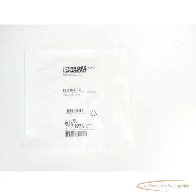 | Type | Phoenix Contact ZB 6,LGS Fortl. Zahlen 31-40 VPE 10 St. 1051016 ungebraucht |