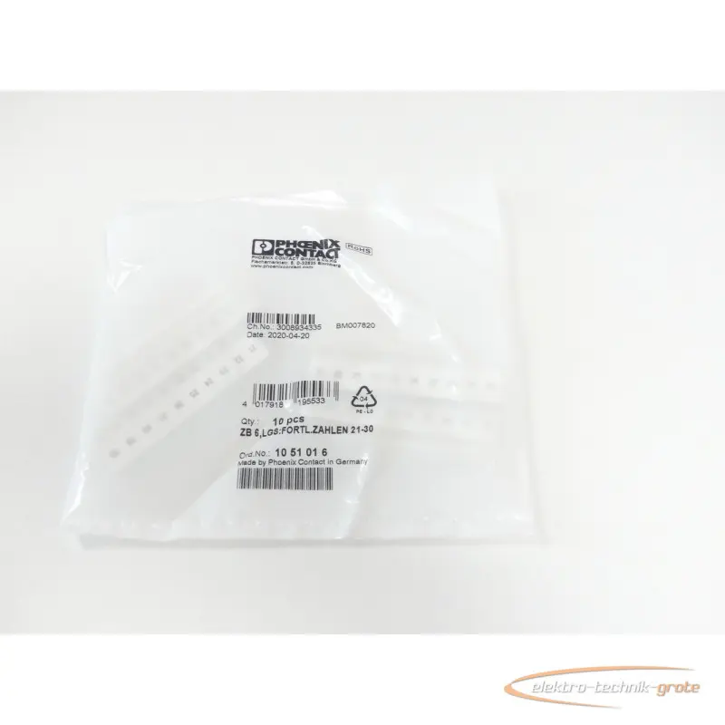 | Type | Phoenix Contact ZB 6,LGS:Fortl.Zahlen 21-30 VPE 10St. 10 51 01 6 ungebraucht |