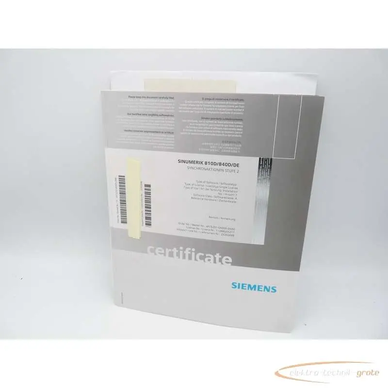 Siemens 6FC5251-0AD05-0AA0, Software-Paket, Lizenztyp: Single License, Art der Nutzung: Instalation, Softwareklasse:A, Lizenz-Nr.:T-V8MQ05277, Sinumerik 810D/840/DE, Synchronaktionen Stufe 2 ,