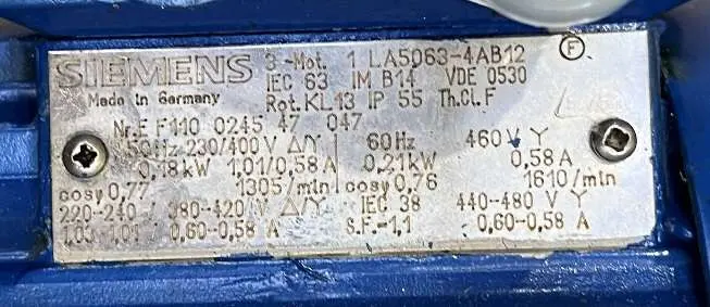 Siemens Getriebemotor, 1 LA5063-4AB12.