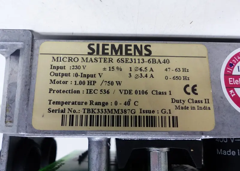 Siemens Micromaster Frequenzumrichter 6SE3113-6BA40 230V 750W 0,75kw TESTED