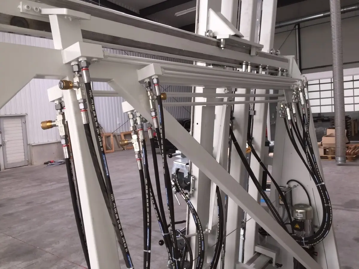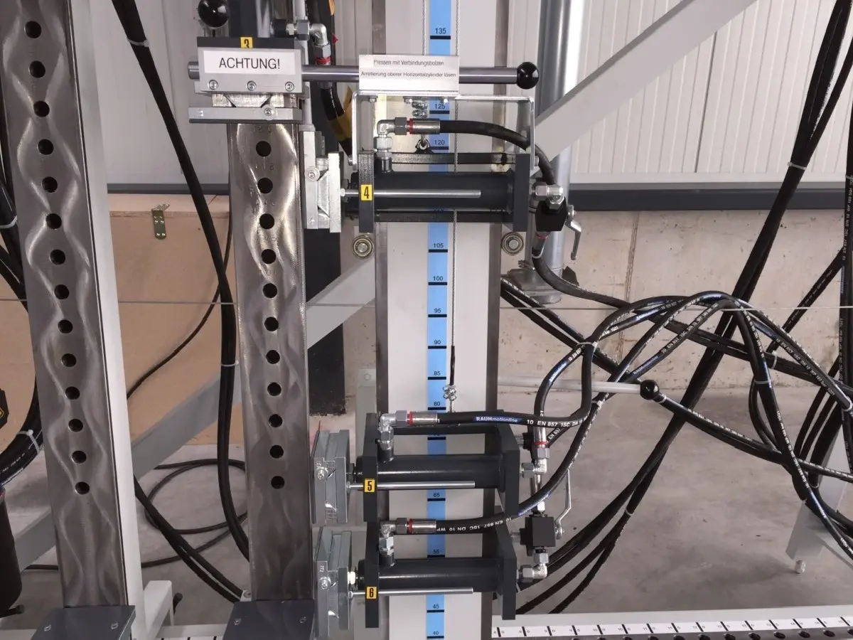 Vertikale Presszylinder auf Spezialdruckbalken mit Einhandschnellverstellung