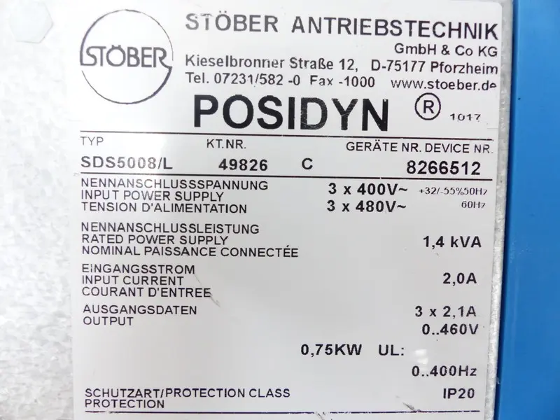 Stöber Posidyn Servo Drive SDS5008/L 0,75kW + ASP5001/1 XEA5001 DP5000 TESTED