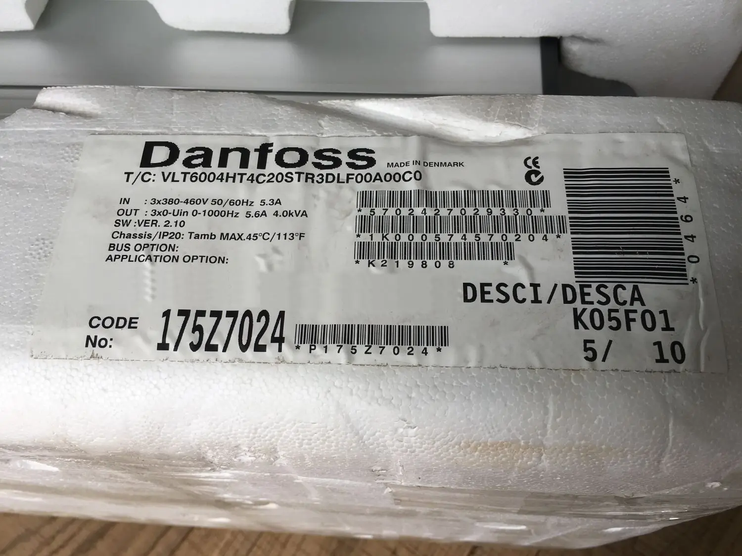 [EN] 1 pcs. new Danfoss 175Z7024 inverter VLT6004 VLT6004HT4C20STR3DLF00A00C0 - in factory packaging! K05 F01