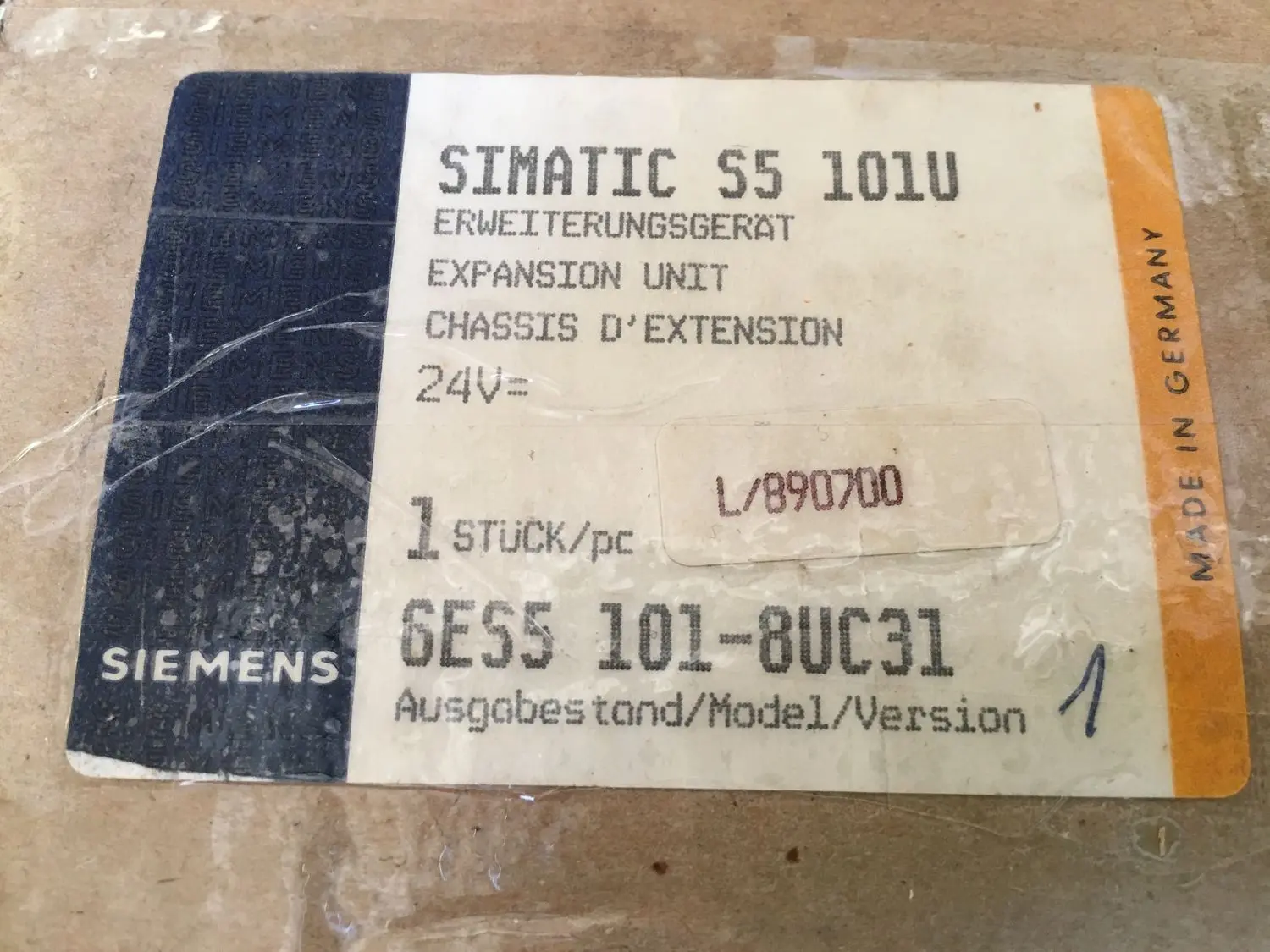 [EN] 1 pcs. new Siemens Simatic S5 101 U CPU PLC Controller Expansion Unit 6ES5101-8UC31 - in factory packaging! E-Stand: 1
