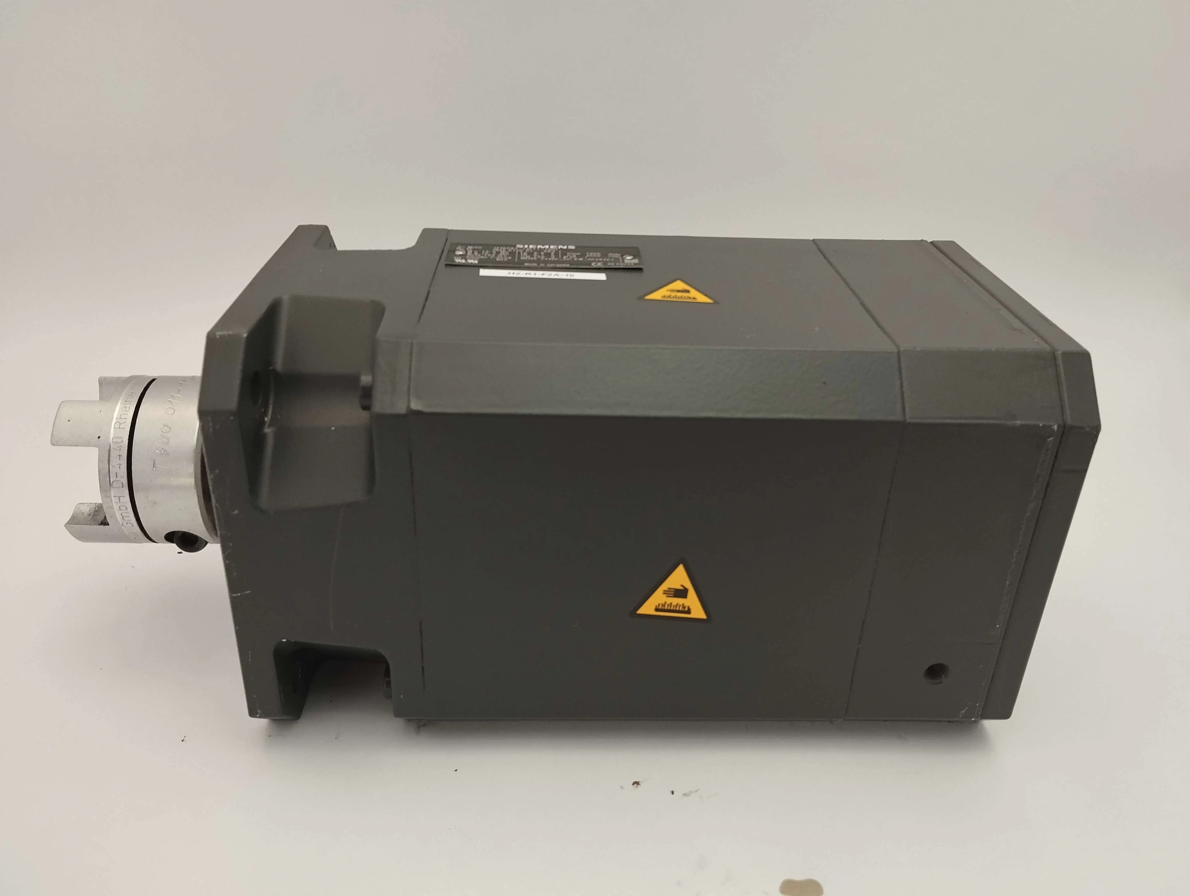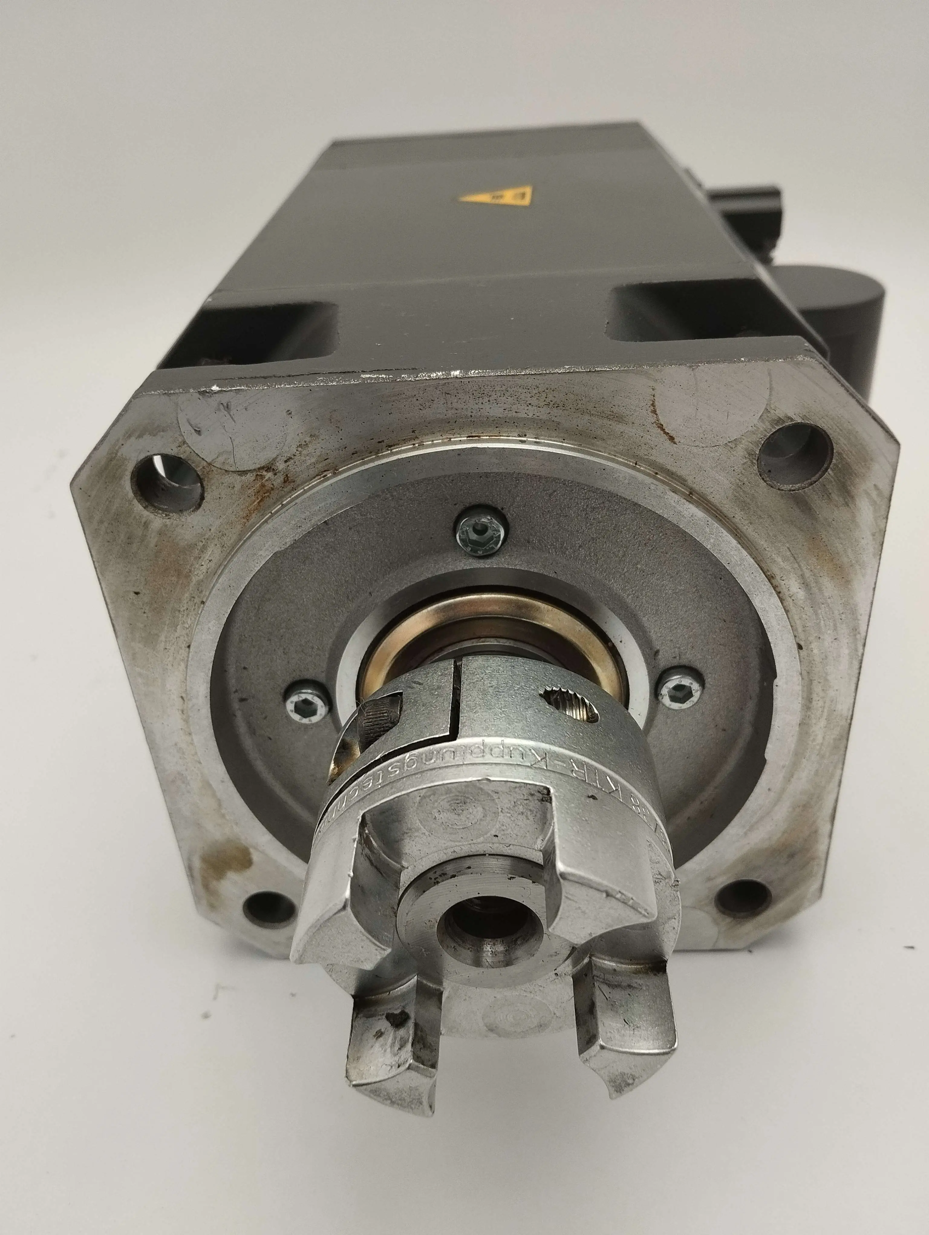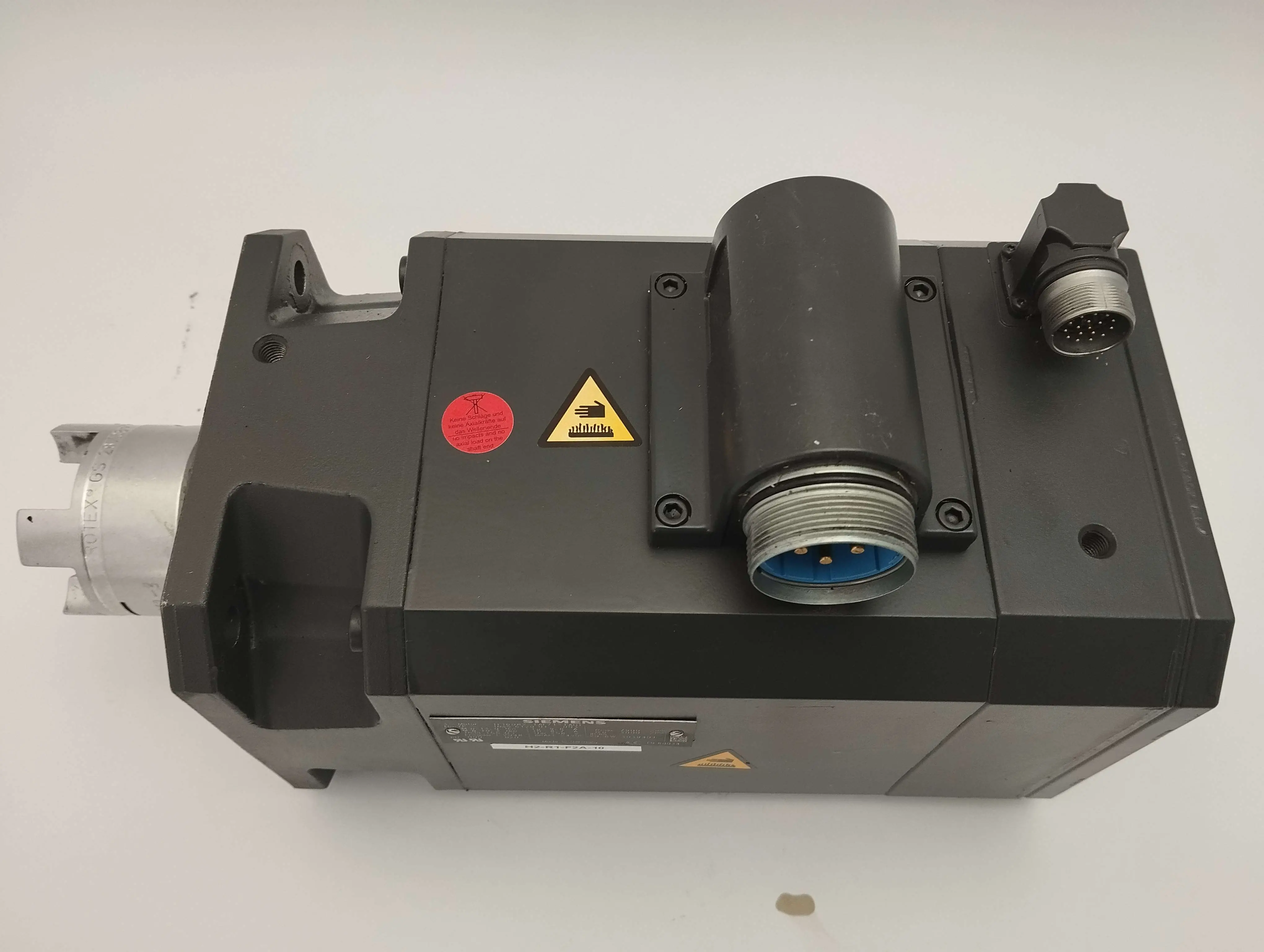 Technische Daten: 3-Phasen-Servomotor mit einer maximalen Drehzahl von 7900 U/min und einer Nenndrehzahl von 3000 U/min, Drehmoment 13 Nm, Spitzenmoment 16,3 Nm, Encoder 2048 Impulse, Schutzklasse IP65, integrierte Bremse 24VDC – 20,6W.