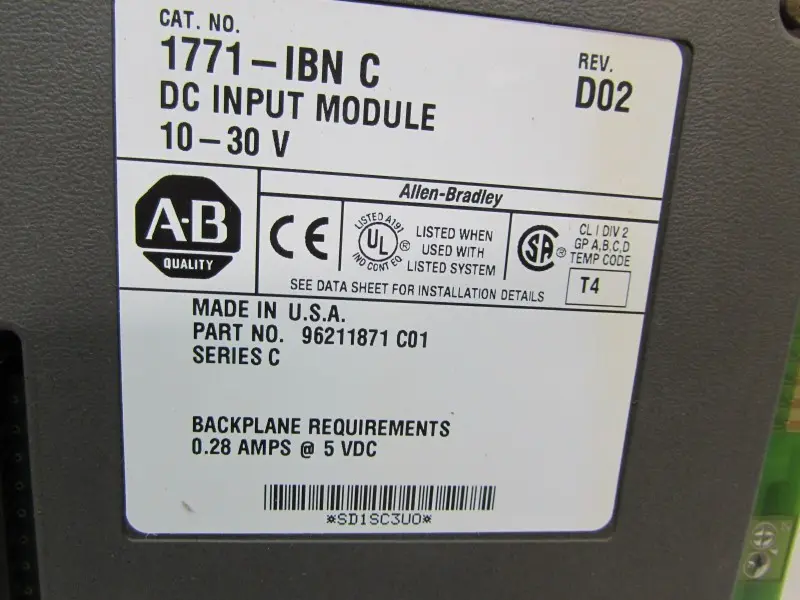 وحدة Allen Bradley 1771-IBN C DC Input Module 10-30 V 0.28 A 5 VDC