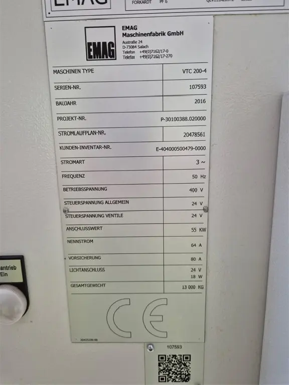 "آلة خراطة عمودية EMAG VTC 200-4, سنة التصنيع 2016"
