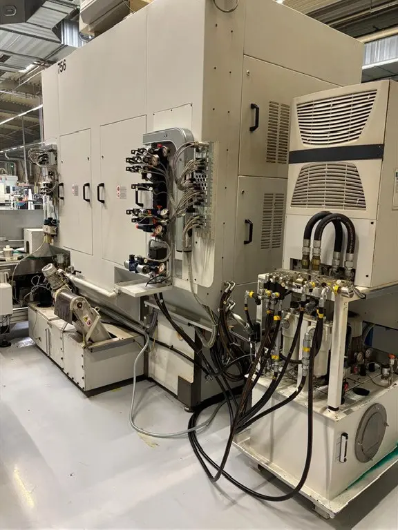 Ein- und Auslaufkettenband, mit Werkzeughaltern, Späneförderer, Hydraulikaggregat und Klimaanlage