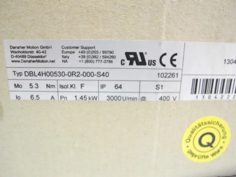 Kollmorgen Danaher Motion DBL4H00530-0R2-000-S40 Servomotor 1,45kW Unbenutzt OVP
